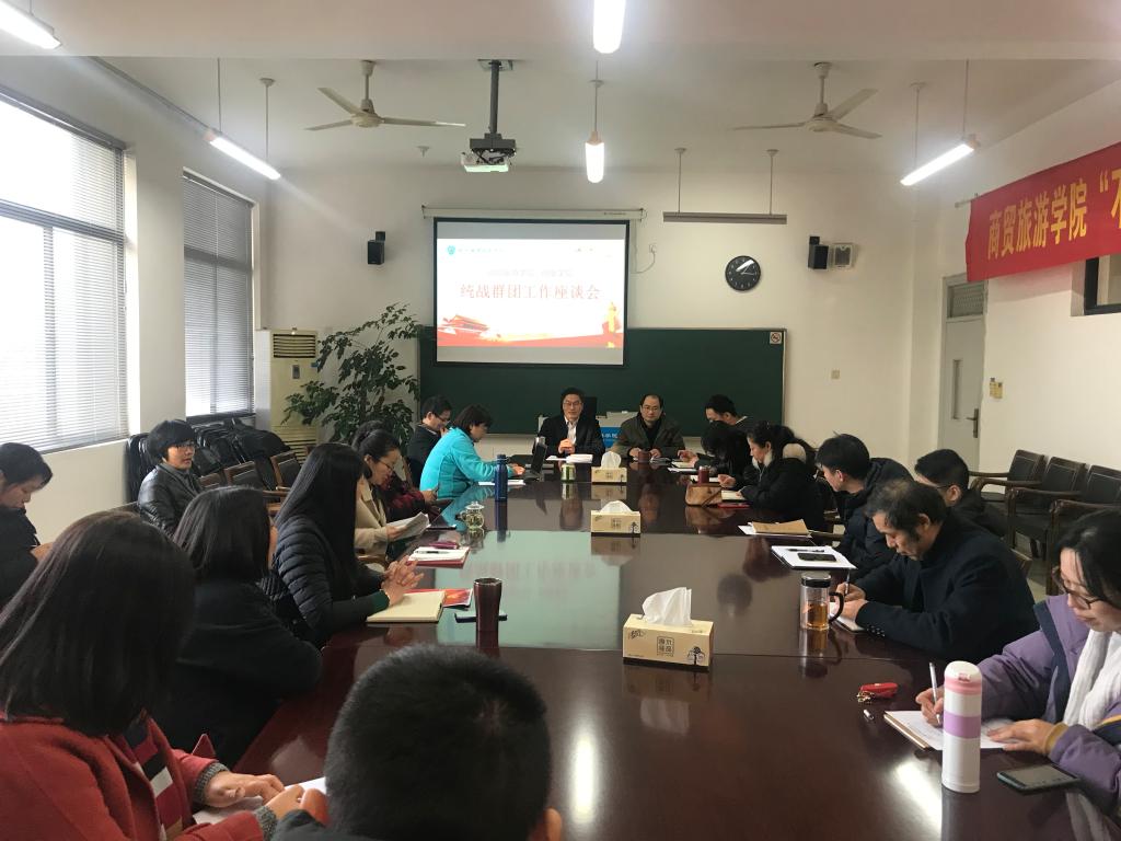 2020年1月8日下午,商贸旅游学院召开统战群团工作座谈会,分院团组织、工会、妇联、民主党派、无党派职工参加了会议。党总支书记姜萌主持会议。