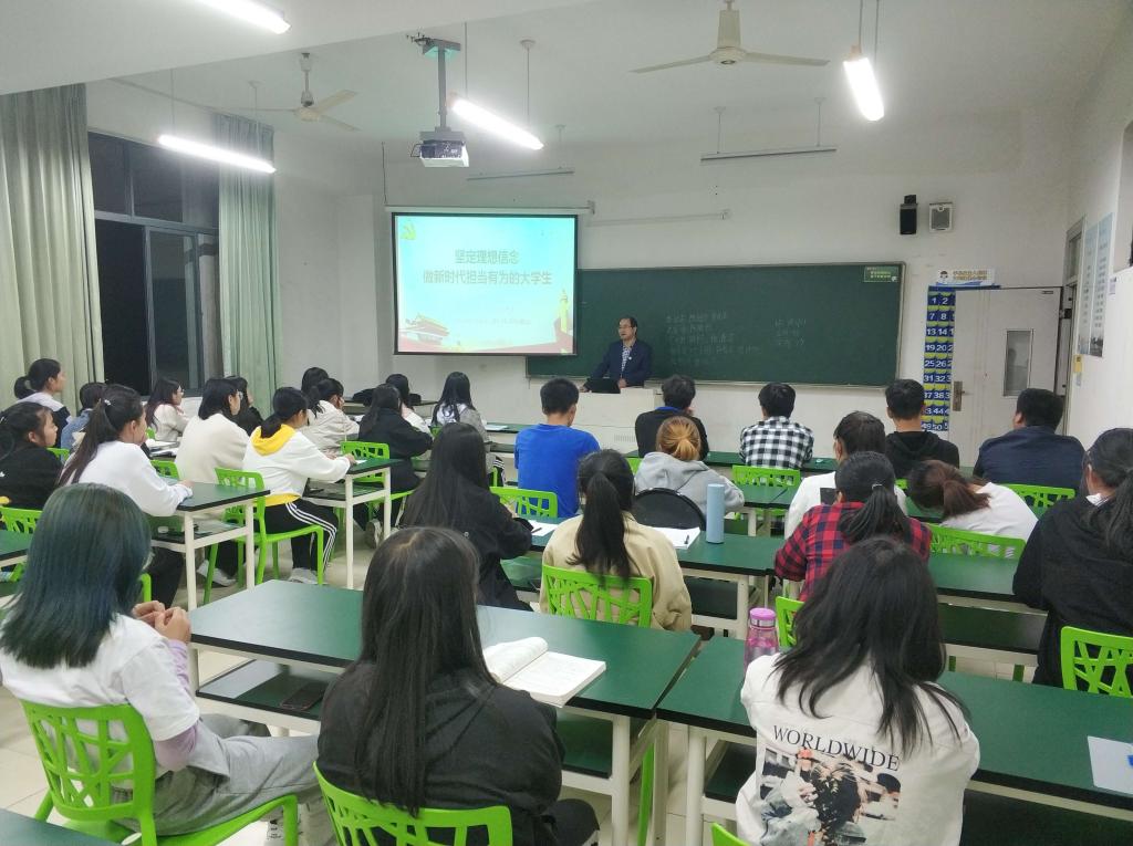11月5日晚,商贸旅游学院院长张赵根以“坚定理想信念,做新时代担当有为的大学生”为主题,为旅游管理1921班全体学生讲授了一堂活泼生动的思政教育课,与学生共话理想信念和生涯发展。