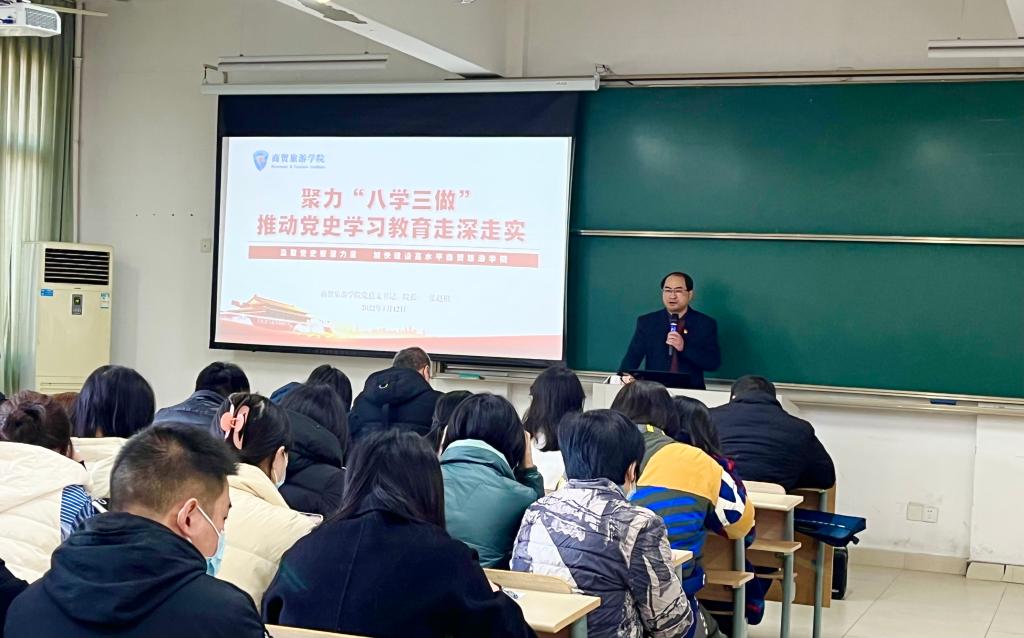 为全面回顾总结分院党史学习教育的做法成效,部署巩固拓展党史学习教育成果,1月12日下午,商贸旅游学院召开党史学习教育总结大会。分院领导班子与全体教职工参加会议,会议由党总支副书记周佳良主持。