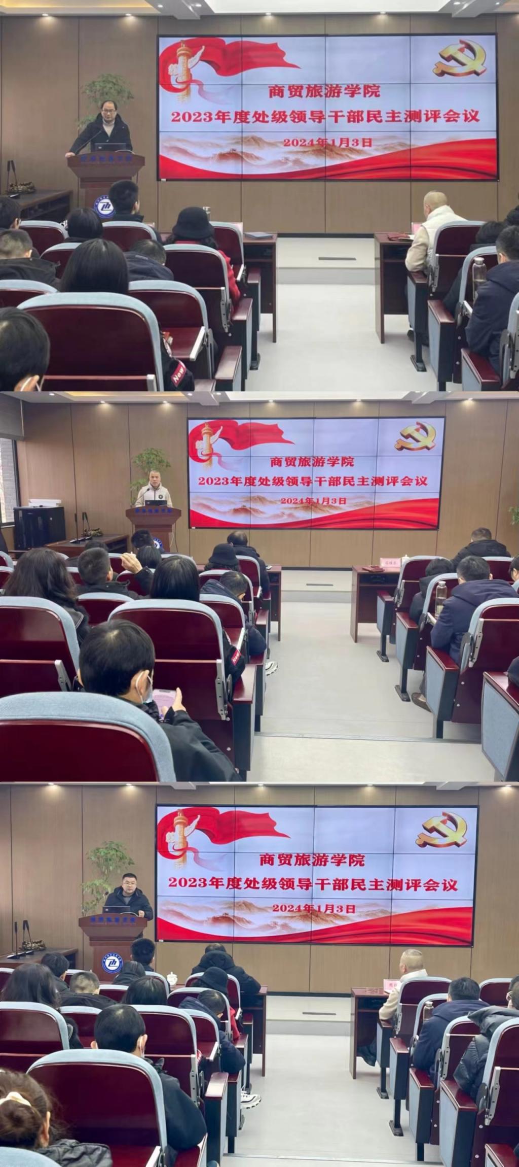 1月3日下午,根据学校党委组织部《关于做好2023年度处级领导干部考核工作的通知》要求,商贸旅游学院在8306会议室召开2023年度分院处级领导干部述职测评会。学校党委组织部副部长贝锐莅会指导,分院领导和全体教职工参加会议。