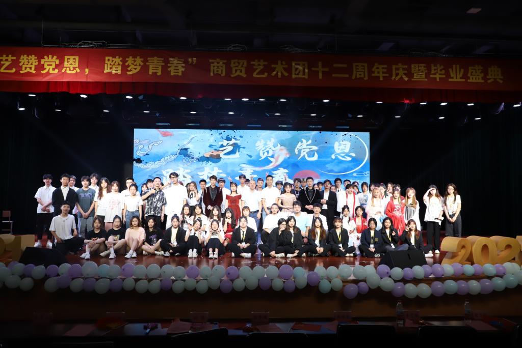 笑语欢声,吹响毕业号角;载歌载舞,镌刻离别思念。6月11日,商贸艺术团“艺赞党恩,踏梦青春”十二周年庆暨毕业盛典在图书馆报告厅如期举行。商贸旅游学院党总支副书记周佳良,校团委副书记、创业学院副院长楼黎瑾,生态健康学院团总支副书记孙菲、商贸团总支副书记李志强、商贸学工办、教科办、专业组教师代,毕业班班主任及毕业生代表出席了本次活动。