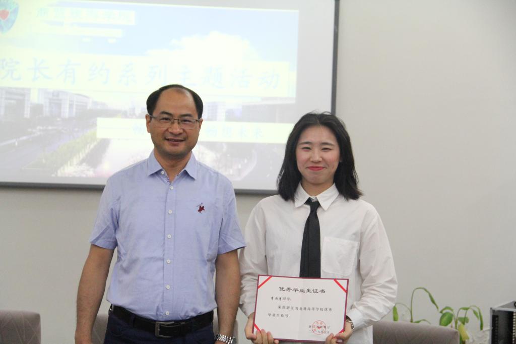 首先,张赵根为分院优秀毕业生颁发了荣誉证书,并对他们表示真诚的祝贺。张赵根对同学们就业或者升学的选择给予了充分的尊重和理解。他提到,“毕业后的五年是职业发展的关键期,就业的同学要坚定理想信念,不忘初心,迎难而上。继续深造的同学要把握机会,砥砺奋进,完善自我。幸福是奋斗出来的,无论是选择就业还是升学,都要在奋斗的新时代实现自我价值和社会价值的统一”。