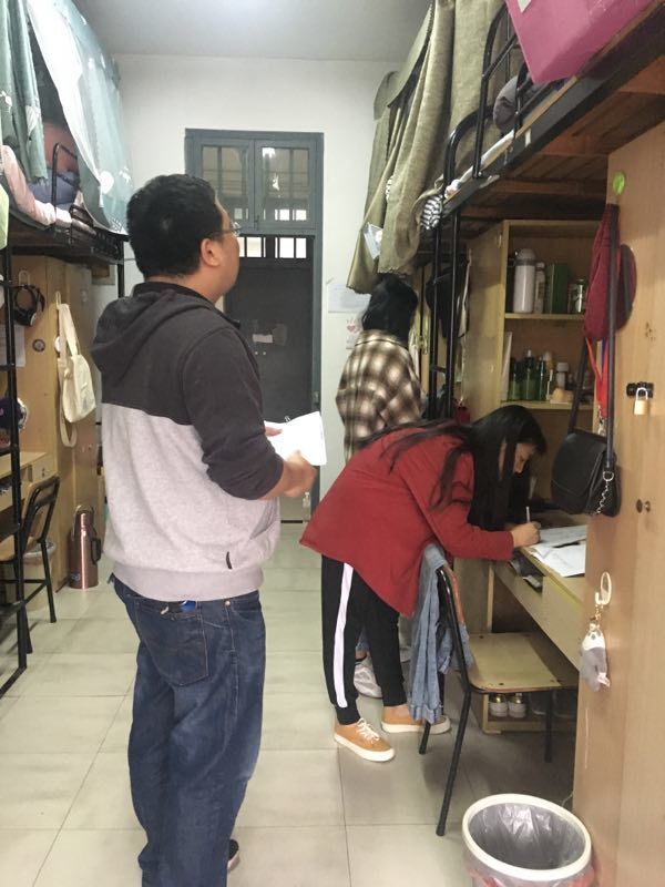 当天下午,狂风暴雨也没能阻挡老师们走访的步伐。党总支、辅导员和部分班主任分组前往分院学生所在公寓楼栋展开随机走访。走访老师逐层逐间,既检查安全消防情况,又关注文明卫生状态,还与他们交流解答新公寓和生活学习的疑惑和问题。老师们每到一个寝室反复叮嘱同学们,注意五一前后交通出行、人身财产、防骗防火等事宜,告知假期公寓值班信息。整个交谈气氛和谐融洽,让学生们感受到分院老师的关心,也进一步拉近了师生距离。