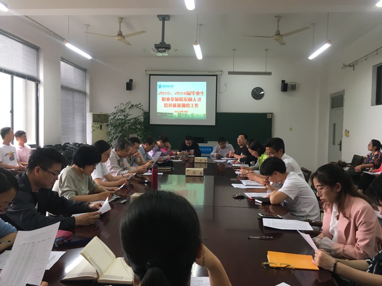 会议分两个阶段。第一阶段分院从调查意义、调查时间、工作要求、任务指标等方面结合历年调查情况,对2016届和2018届毕业生跟踪调查的进行了布置,要求全体班主任落实学校相关会议精神,做好毕业生跟踪调查的走访、引导、动员、答题等工作。