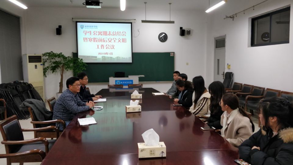 1月14日晚,商贸旅游学院在8318会议室召开学生公寓辅导员期末总结暨寒假前后安全文明工作会议,总结一个学期文明寝室建设及公寓安全情况,布置假期前后学生公寓工作。分院党总支书记姜萌、学工办相关老师、全体公寓辅导员参加了会议。
