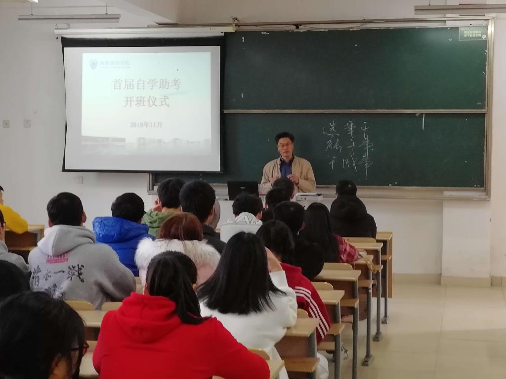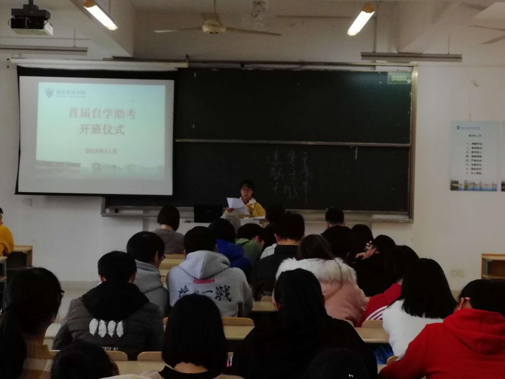 11月27日下午,商贸旅游学院举行了首届自学助考开班仪式。商贸旅游学院百名自考生参加。邹大东老师主持开班仪式。