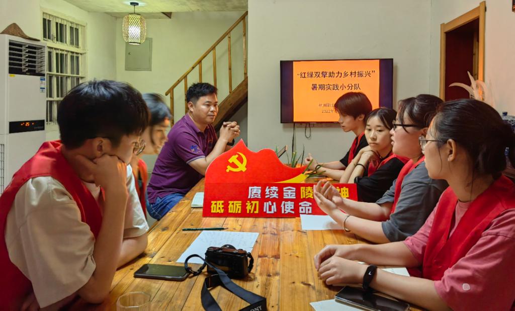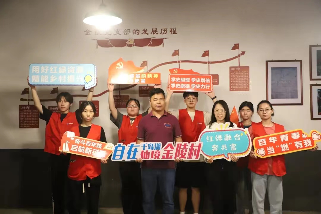 今年的七一建党节可不一样!为以热情饱满的姿态迎接党的二十大胜利召开,进一步深入推动党史学习热潮,激发青年学子爱国情怀,杭州职业学院商贸旅游学院“红绿双擎助力乡村振兴”暑期实践小分队师生8人来到了淳安县金陵村学习金陵精神,传承红色基因,揭秘“网红村”蝶变的密码。