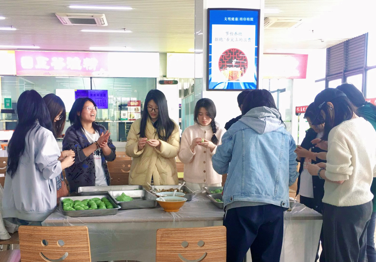 活动现场,社团骨干首先向同学们介绍了清明节的起源、习俗及青团的象征意义。随后,在食堂阿姨的悉心指导下,同学们分组体验传统青团制作工艺:将新鲜艾草汁融入糯米粉,揉制成翠绿面团,包裹豆沙、肉松蛋黄等馅料,最后搓捏成寓意团圆的青团。制作过程中,同学们自发分享家乡清明习俗,有的讲述祭扫先人的传统,有的回忆童年踏青趣事,更有同学深情朗诵“清明时节雨纷纷”等经典诗句。当蒸制好的青团揭开锅盖时,碧绿如玉的团子散发着淡淡艾香,同学们品尝着自己亲手制作的传统美食,纷纷表示这比买来的青团更有“清明的味道”。