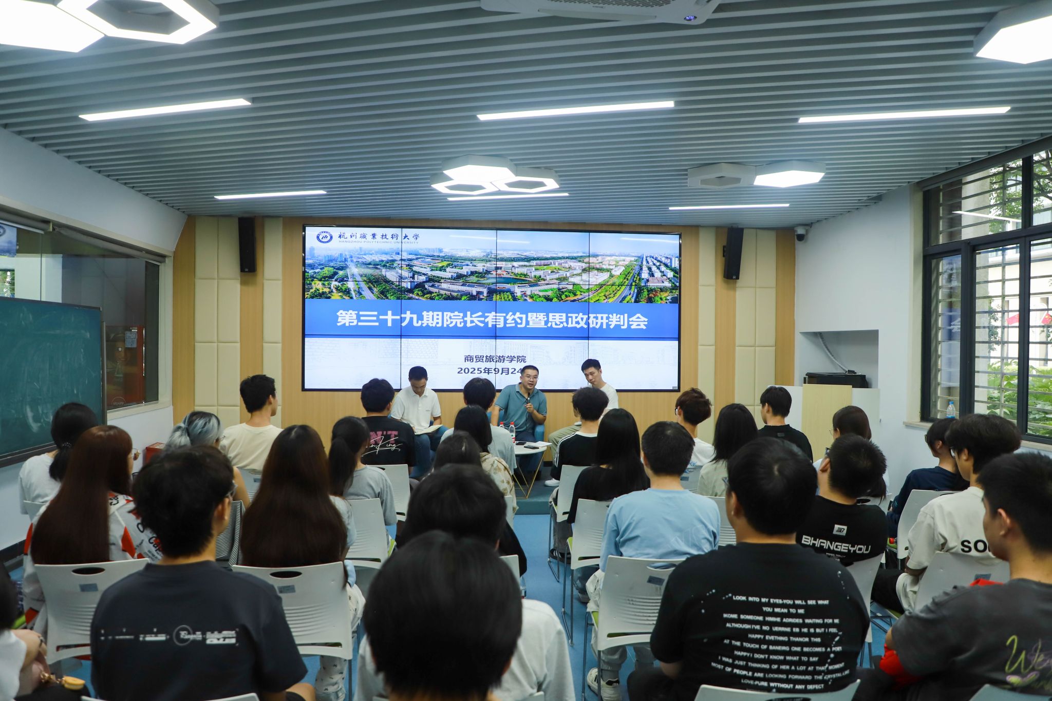 搭桥梁、解困惑、促成长。9月24日下午,商贸旅游学院在8108电子商务实训中心举办第三十九期“院长有约”暨思政研判会。分院副院长、电子商务专业负责人袁江军,专业副主任石佳文与首届本科新生代表共同参与,团总支副书记李志强主持。