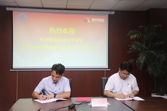 为贯彻落实产教融合、协同育人理念,推动现代物业管理专业高质量发展,10月16日下午,商贸旅游学院与杭州地铁物业服务有限公司在校企合作签约仪式暨党建共建揭牌仪式上达成战略合作。学院党总支书记、院长张赵根,党总支副书记、现代物业管理专业负责人范昕俏,以及教师代表蒋海霞、陈婷婷、陈朱莉等;杭州地铁物业服务有限公司党总支书记、董事长、总经理曾广才,党支部委员、副总经理黄亚洲,张婷、戴玮、邱冠航等企业代表共同参与签约仪式。