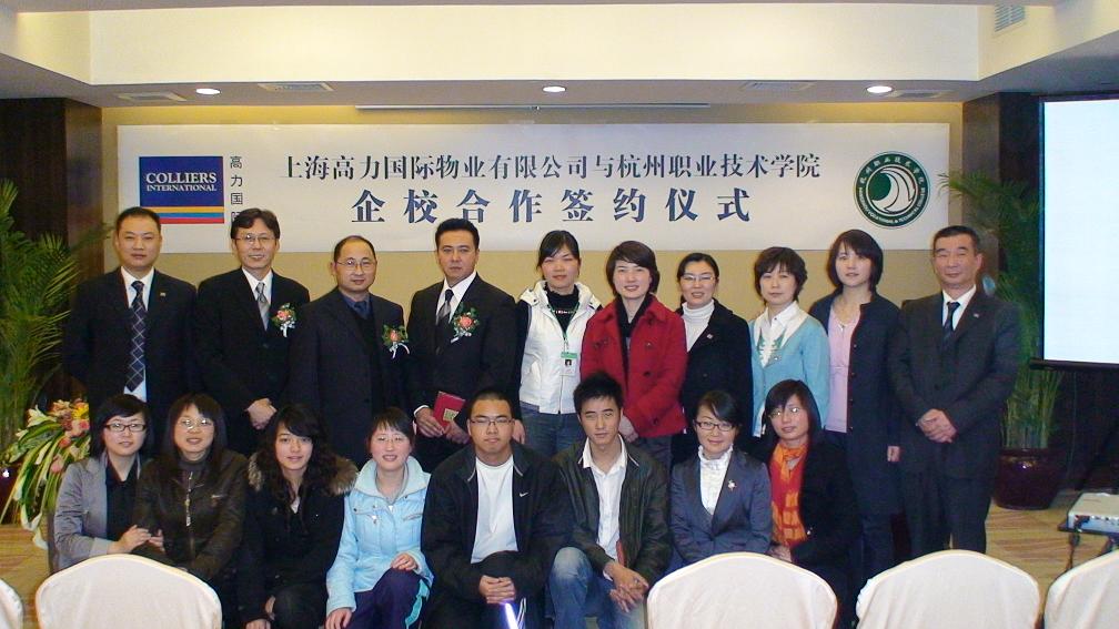 2009年3月27日下午,我院金都管理学院物业管理专业和上海高力国际物业服务有限公司校企合作共建实训基地签约仪式在杭州国际假日酒店隆重举行。标志着我院在与上海高力国际物业服务有限公司经过多次接触、多次磋商之后,稳定的合作伙伴关系正式建立。