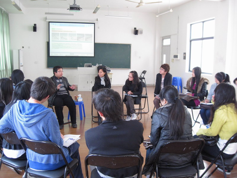 2010年4月24日上午,金都管理学院圆心舍有幸邀请到了杭州市创业协会副主席兼下沙网总监尚贞涛先生莅临8610教室,与我校积极进取的同学们围坐一圈,相互交流完美大学生活的真谛。座谈会在尚总幽默的介绍中拉开了帷幕,首先是问答环节,同学们纷纷说出心中的困惑,尚总采用头脑风暴的方式,逐步让同学们明晰了大学生职业生涯的概念。其次尚总通过自己的成长启示,结合大学生的实际情况,共同讨论怎样缔造完美大学生活。最后从企业家的角度,分析用人单位对人才的选聘要求及面试时需要注意的问题,并对当前大学生是否适合创业谈了自己的诸多想法。