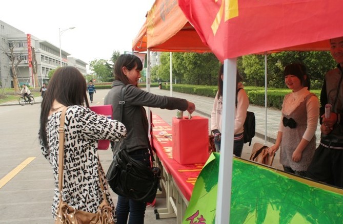 4月21日至25日期间,金都管理学院圆心舍协同友嘉机电学院同舟室在杭州职业技术学院体育馆前面开展了“捐出一角钱,传递一份爱,成就一个希望”的爱心公益活动。持续一周的爱心活动,吸引了全院师生的踊跃参与,共募集到爱心善款745元。所有善款将于下学期初转换成学习用品送达贵州省望谟县打易中学的同学手上。 金都管理学院圆心舍自2009年与贵州省望谟县打易中学结对以来,策划了“爱心值班车”和“一角钱”活动。“爱心值班车”通过回收废品变卖筹款,环保中汇聚爱心,每学期期初和期末举行两次;“一角钱”活动倡导勤俭之风的同时发挥1+1的力量,每学期举行一次。 每年新学期开学后将爱心物质寄给贵州省望谟县打易中学。通过活动的持续开展,给我院学生提供了奉献爱心的窗口,升华了“扬善尚美”的主题教育,成为了提高我院学生综合素质的有效途径之一。 |