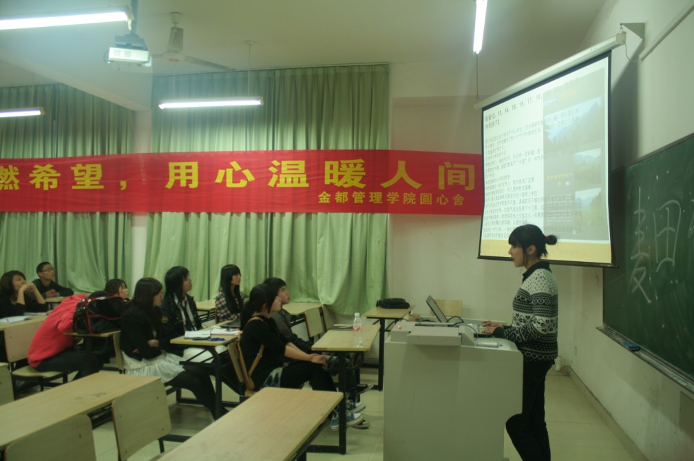 2012年4月9日至13日,金都管理学院圆心舍于体育馆前面开展了为期一周的以“用爱点燃希望,用心温暖人间”为主题的纪实摄影展活动。本次活动是金都管理学院圆心舍首次与杭州职业技术学院校学生会联合主办,由杭州电子科技大学、中国麦田组织协办的首届摄影展活动。