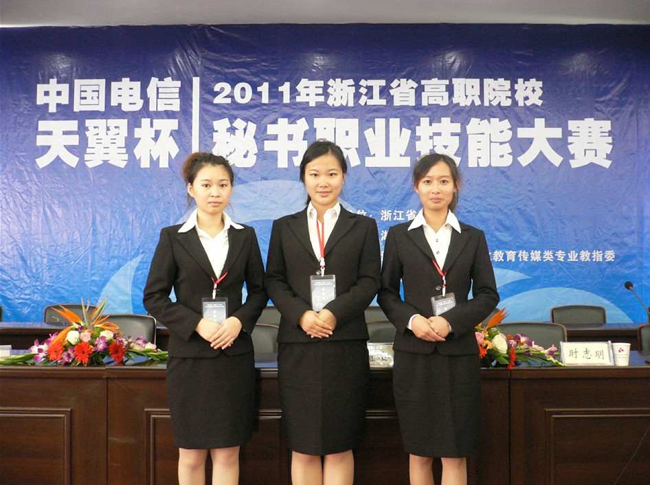 经过激烈的比赛,由沈黎嫣老师指导的杭州职业技术学院代表队(文秘0911班蒋洁霞、刘莹、蔡丽萍组成)获得二等奖。在此,对指导老师和获奖的同学表示祝贺。