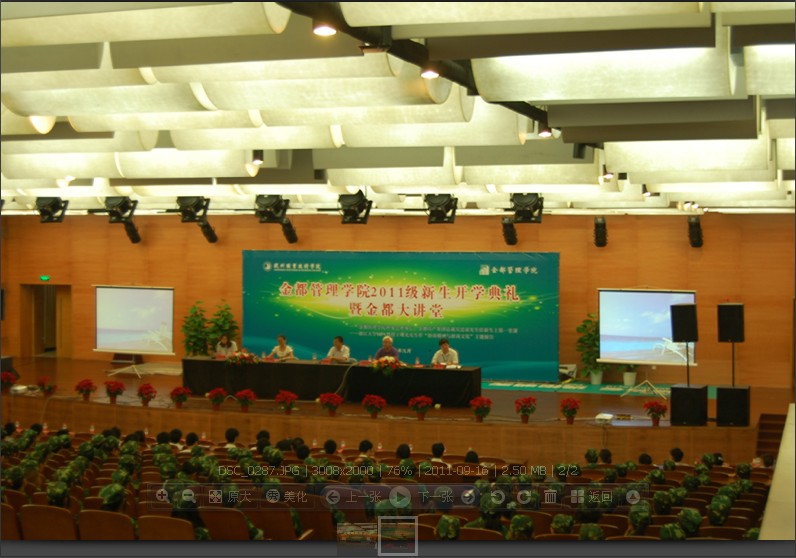 开学典礼的最后环节是金都大讲堂。首先由金都房产集团总裁、金都管理学院理事会理事长吴忠泉给新生们上第一堂课。他用真实感人的青年学子的事例感染激励在座的每一位同学和老师,他说作为年轻人,要交出一份令自己满意的答卷,其中很重要的是要具备“高智高技”。在当前的社会背景下,大学生毕业后,步入社会将面临很大的压力,因此同学们要用心度过这三年宝贵的学习机会。
