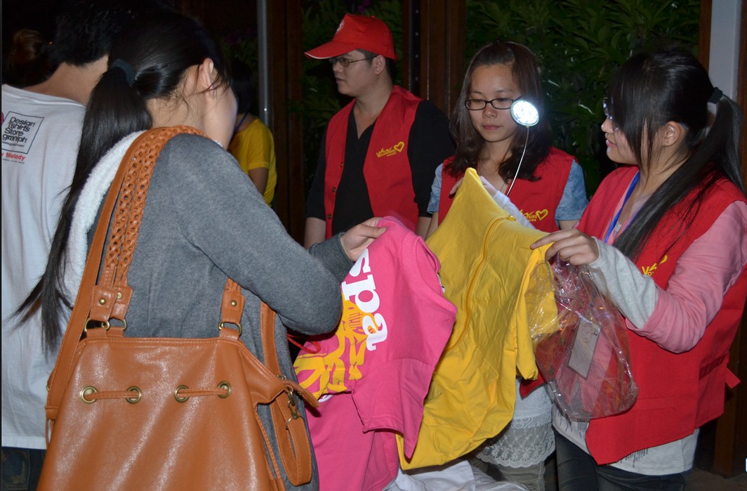 当晚六点,“圆心舍”服务小组在创意集市摆起了4个摊位,开始了义卖活动。个性T恤、打折书籍和一套套别致的拼图吸引了来来往往的大学生,当往来的人们知道是义卖的时候,纷纷给予了支持。当天活动持续到了九点,所得义卖善款都存入下沙网义工联盟的公益基金。