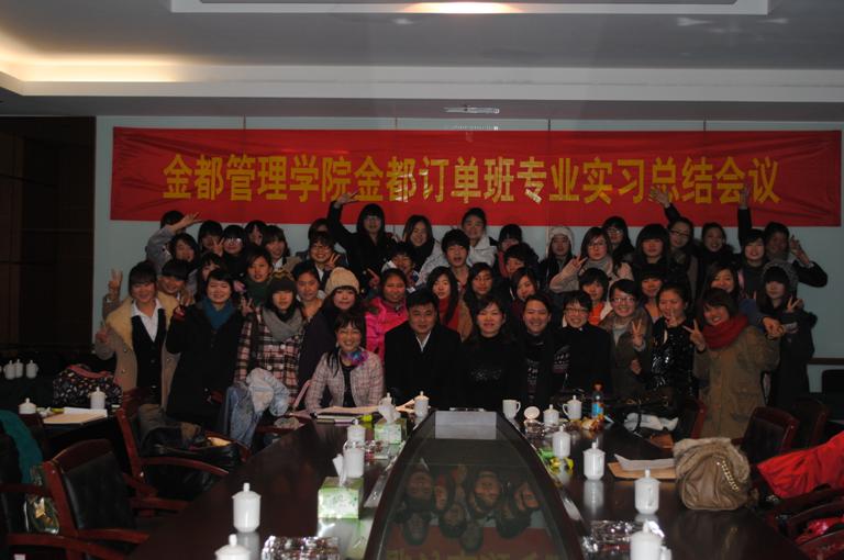 1月12日,金都管理学院金都订单班专业实习总结会在金都高尔夫艺墅召开。金都物业管理公司总经理鲁海平、副总经理裘行丽、人事部部长曾鲜艳等,我院戴凤微副院长、蒋秋霞副教授、张海兰老师、潘虹老师,以及订单班全体学员参加了会议。毛鑫等八位实习学生代表发表了实习感言,戴凤微副院长和鲁海平总经理分别作总结讲话。曾鲜艳部长主持会议。