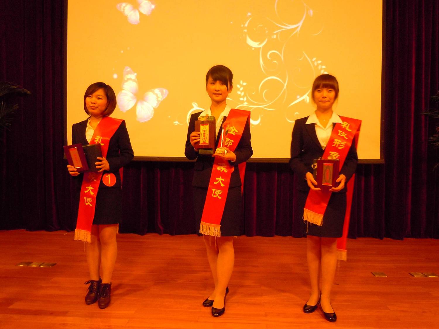 金都管理学院的徐嫣(文秘1041班)、李慧超(旅游1041班)、葛晓芳(旅游1041班)、汪倩楠(旅游1041班)、王馥莉(旅游1051班)等8名选手经过初赛的激烈选拔,参与了最后的角逐。大赛共分自我介绍、才艺表演、知识问答和最后拉票四个环节。8名选手极尽自己的表演才能、展现自己的礼仪风范,现场不时响起阵阵掌声。