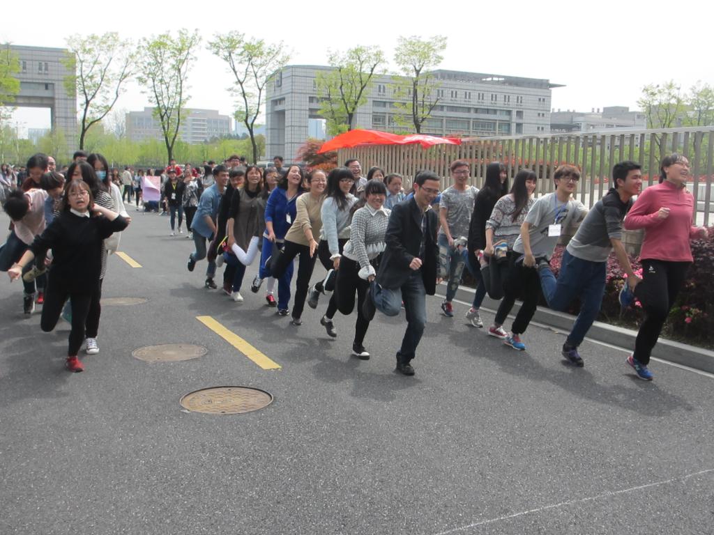 老师,促进师生和谐。4月15日下午,金都管理学院在8号楼前广场举行师生合力趣味运动会,30多名教师和200多名学生参加了活动。