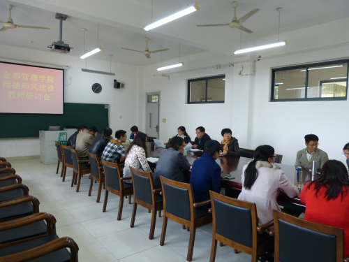 根据学校师德师风建设工作的统一部署, 11月17日下午,金都管理学院召开师德师风建设教师研讨会,学校党委委员、组织部部长孙爱国参加并指导研讨会,会议由分院党总支郑巧东书记主持。