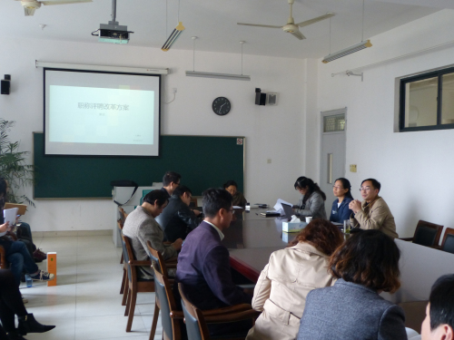 今年是职称评聘下放学校评定的第一年,为更好服务教师职称评定工作,进一步加强金都管理学院教师队伍建设。11月12日下午,金都管理学院邀请人事处叶青青副处长到分院会议室为广大教职工进行职称政策解读。