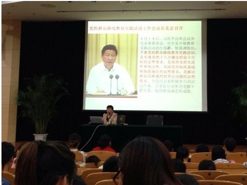 为了保证党的群众路线教育实践活动深入可持续地开展,在学生中深入党的群众路线精神,同时促进“学生党员多角色示范岗”建设活动更好地开展,9月27日晚上,金都管理学院党总支组织“党群众路线教育实践活动暨‘学生党员多角色示范岗’建设活动介绍”讲座。由金都管理学院党总支副书记郑巧东主讲。