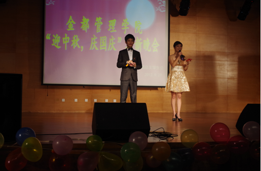 9月27日18:00,金都管理学院2012级新生迎新晚会在图书馆报告厅拉开了序幕,校学生处副处长郑何敏、金都管理学院党总支副书记(主持工作)郑巧东及分院教师一同出席晚会。