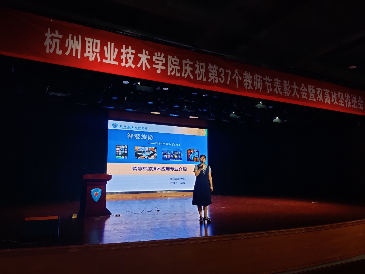 在专业认知教育活动前,各专业组都经过认真思考,制作精良的幻灯片,准备了专业相关的宣传短片和文件,力求将专业发展和学生成长的“干货”带给学生。会上,各专业负责人紧紧围绕学校“数智杭职、工匠摇篮”主题,向全体2021级新生娓娓道来专业的“十四五”发展目标。他们用图文并茂和亲身经历为新生呈现行业专业的背景和优势,专业“数智”赋能的蓝图前景;用详实数据和教学案例展现了专业的学习内容、课程特点和专业特色;用丰富的优秀校友事迹和丰硕的学生比赛成果,激励学生明确职业规划发展方向,努力学习。