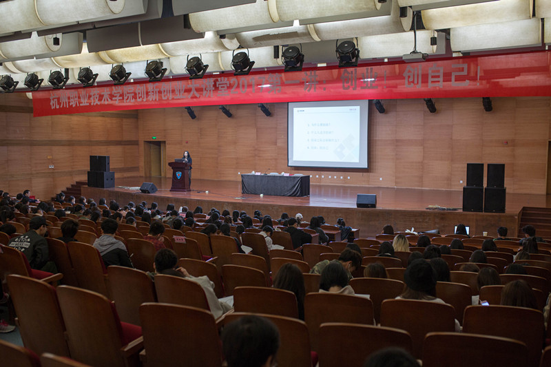 2017年3月29日,创新创业大讲堂在图书馆报告厅如期开讲。本期大讲堂主讲嘉宾是彩虹鱼康复护理有限公司董事长李培英博士,主题为“创业!创自己!”。副校长陈加明,商贸旅游学院院长、创业学院常务副院长张赵根,彩虹鱼康复护理学院书记、常务副院长茅千里,创业学院副院长张理剑,以及全校八百余名师生到场聆听。大讲堂由张理剑主持。