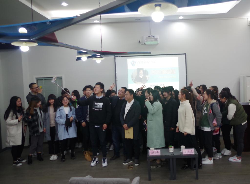 汤涛学长分享完后,在座同学纷纷举手与学长互动。有的同学提到了对自身学历的怀疑,有的同学谈到了人际相处的困惑,有的同学提出了对学生创业的疑虑,还有的同学表达了对就业择业的困扰……汤涛学长对这些问题都一一解答,并且普及了创业的相关知识,从他的侃侃而谈中,表现了他对梦想的坚持、创业的自信以及对生活的热爱,他的态度深深感染了在座的每一位同学。