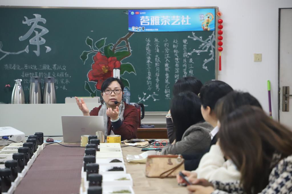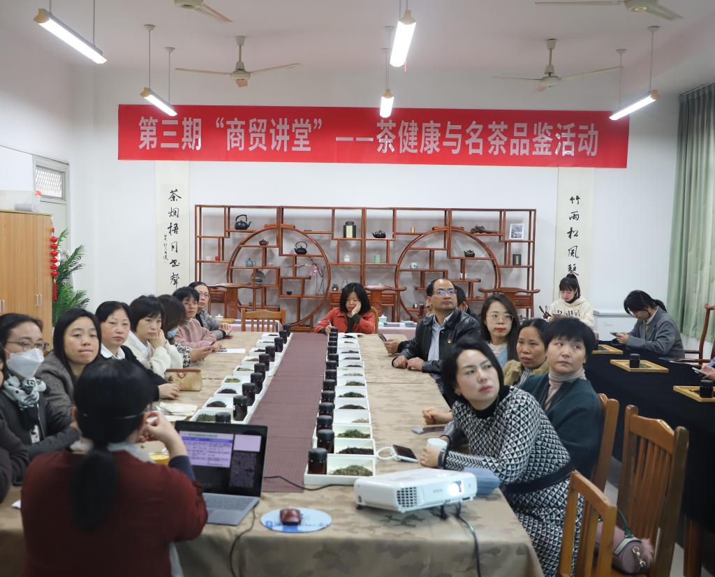 为活跃分院文化育人氛围,提升教师文化修养,11月17日下午,商贸旅游学院第三期“商贸讲堂”在8611茶艺室开讲。本期讲堂的主题是“茶健康与名茶品鉴”,由国家茶艺考评员、一级茶艺师,智慧旅游管理专业教师宋华英主讲,商贸旅游学院院长张赵根和分院30余名师生代表参加了此次活动。