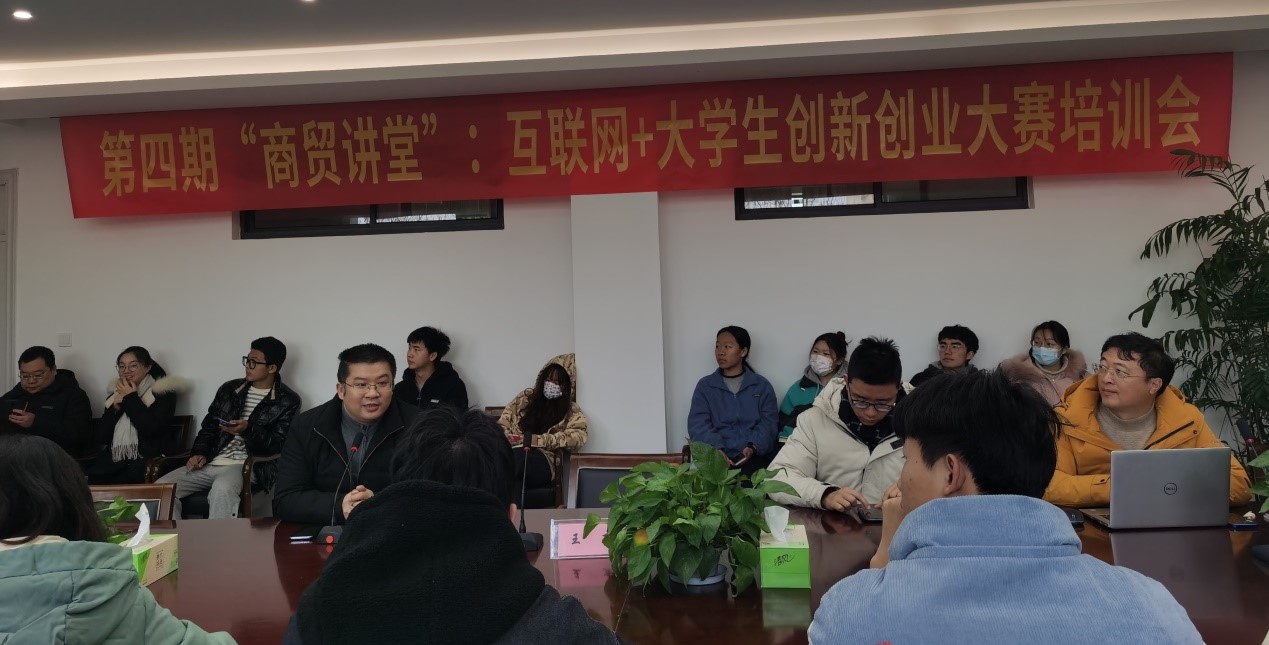 1月6日,第四期“商贸讲堂”在商贸会议室顺利开讲,17支参赛队伍的指导教师、学生代表参加培训,会议由商贸旅游学院副院长袁江军主持。
