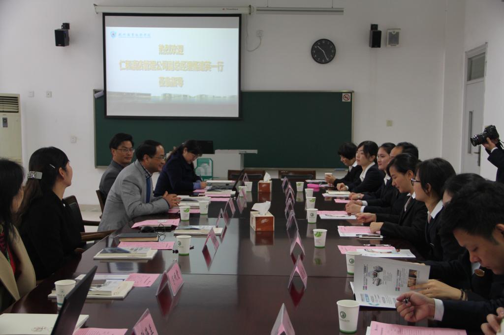 随后,校企双方在8318会议室进行了深度交流。张赵根简要介绍了杭职院的办学情况和商贸旅游学院各专业的基本情况。旅游管理专业负责人杨强介绍了旅游管理专业特色、校企合作现状及提高学生专业技能和职业素养的具体举措。杨建英就仁和酒店管理公司的概况和校企合作、校园招聘等想法进行了交流,他对我校的办学成就和校企合作的理念十分认同,并希望双方在人才培养、管理创新和技术交流上加强沟通合作,实现优势互补。双方还就校企战略合作达成了初步意向,接下去将逐项予以落实。