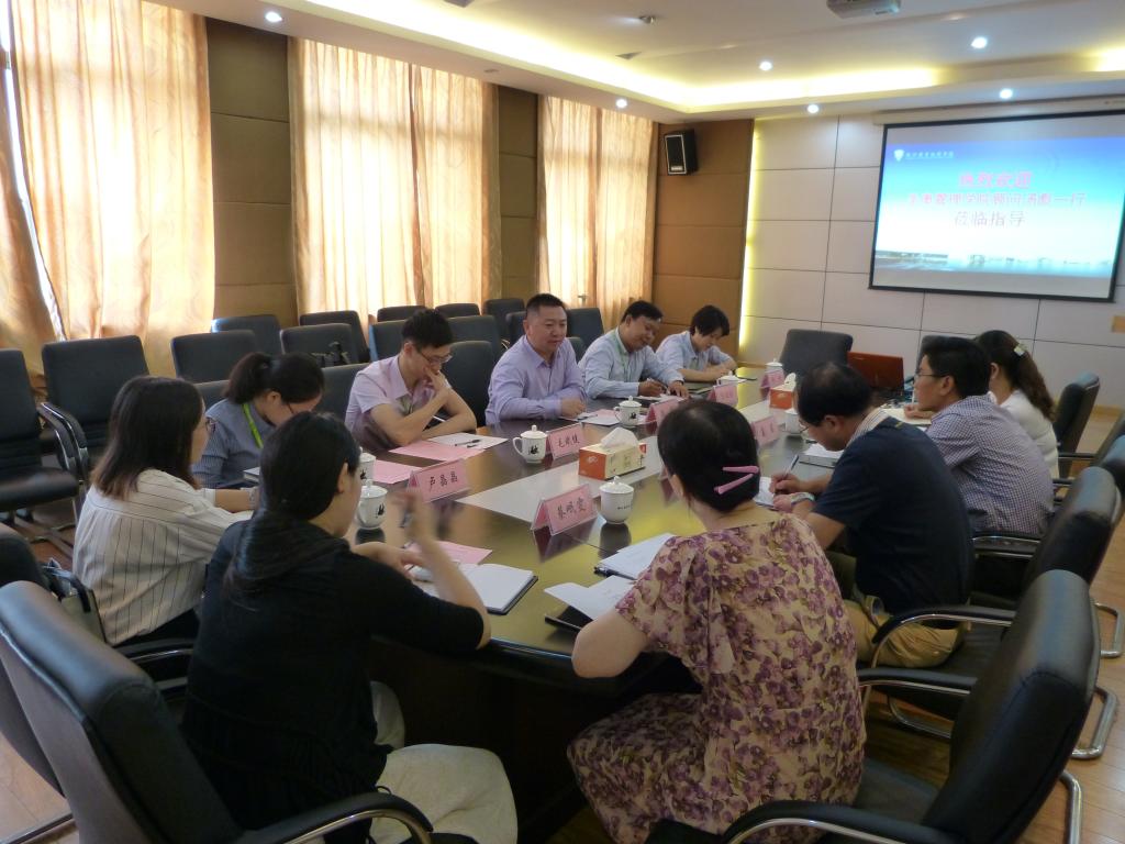 来宾一行首先参观了商贸旅游学院电子商务生产性实训基地、电话营销实训室,随后双方在6308会议室进行了交流洽谈。座谈会上,姜萌介绍了学校基本情况和校企共同体办学理念,他指出校企合作成功的关键在于校企双方共同的努力和足够的热情。张赵根简要介绍了商贸旅游学院专业建设情况,并提出了合作的初步设想。汤彪介绍了圣奥集团的经营理念、人才需求特点等情况。随后,双方重点就圣奥订单班的学生遴选、课程设置、师资队伍培养和学生激励等方面的细节进行了深入讨论,达成了初步意见,并商定了双方合作协议的签订事宜,以及订单班的学生遴选推进工作。