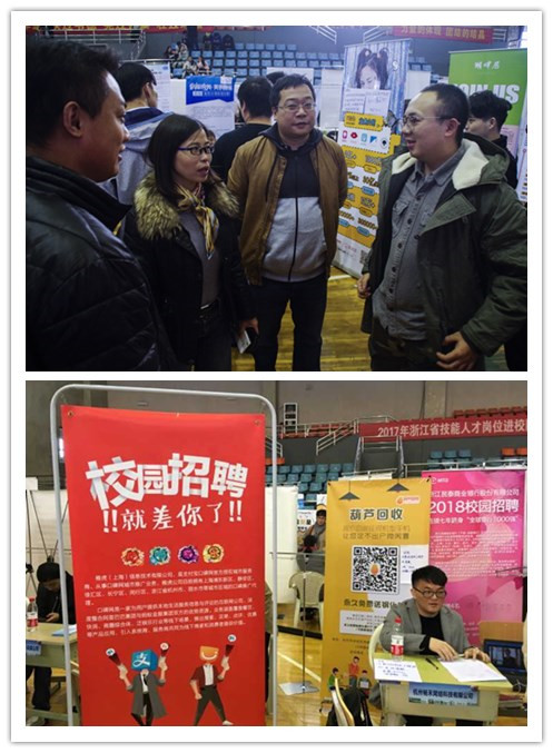 杭州圣奇奥伞业有限公司执行总经理俞华平是商贸旅游学院市场营销专业04级的毕业生,他自毕业后先后供职多家知名企业,最后与伙伴创办了三家企业。这次他回校面向2018届毕业生招聘近10人。俞华平说:“今天很荣幸以校友企业的身份回校招聘,来参加招聘会首先就是信任母校培养的学生质量,也希望通过参加招聘会能够为母校做些事,更希望能招募好的毕业生一起开创未来。”像这样的校友企业还有好几家,他们在当天的招聘会上都拿出了公司的重要岗位面向母校毕业生开展招聘。