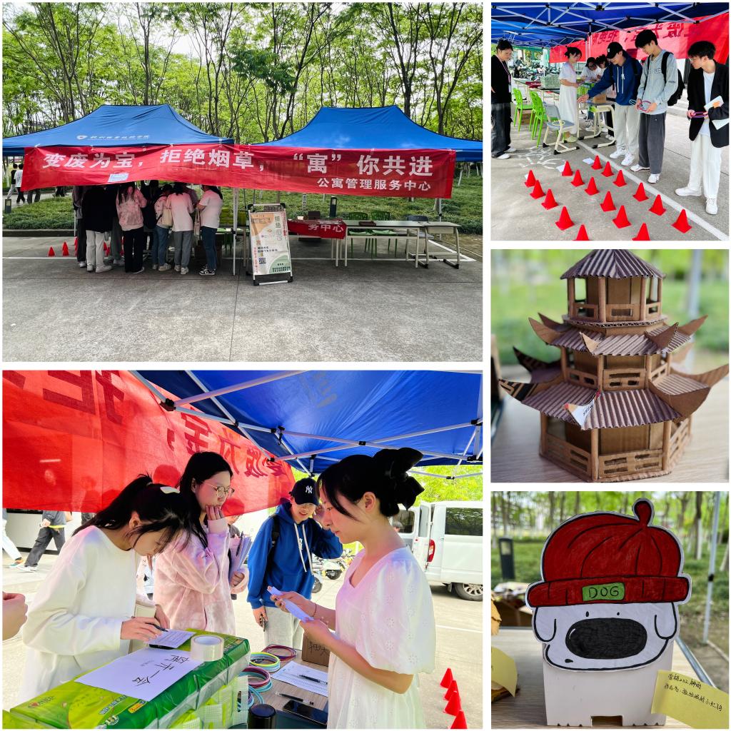 在世界地球日到来之际,为增强广大同学的环保意识,普及烟草危害相关知识,构建无烟校园,创建绿色公寓,助力“一站式”学生社区建设。商贸旅游学院学生公寓管理服务中心于4月18日在8号教学楼东侧举办了第五届邻里节之“变废为宝,拒绝烟草,‘寓你共进’”活动,百余名师生参加了此次活动。