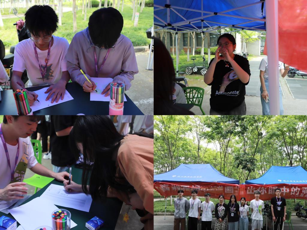活动分别以“你比我猜”及“手绘心中亚运”两种形式于八号楼一楼东侧展开,动静联合,共塑亚运氛围。一侧是两两一组的参赛选手通过抽取纸条比划亚运项目进行猜测的火热答题现场,另一侧则是同学们静坐发挥奇思妙想,用彩笔绘出心中美好亚运的作画场景。同学们在活动中进一步增进了互相之间的沟通与交流,增强了凝聚力与向心力,激发了青年人迎接亚运的昂扬热情。