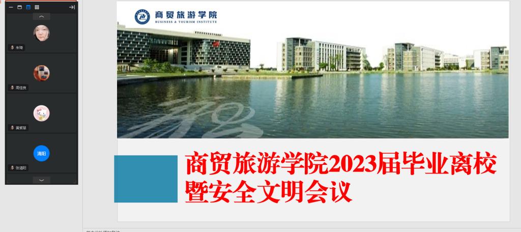 为了切实做好2023届毕业生毕业离校相关工作,确保毕业生有序、安全、文明离校,6月13日晚,商贸旅游学院在线上召开2023届毕业离校工作暨安全文明会议。商贸旅游学院党总支副书记周佳良,学工办王晓磊、陈玉燕和2023届毕业班班主任、班长、班助参加会议。