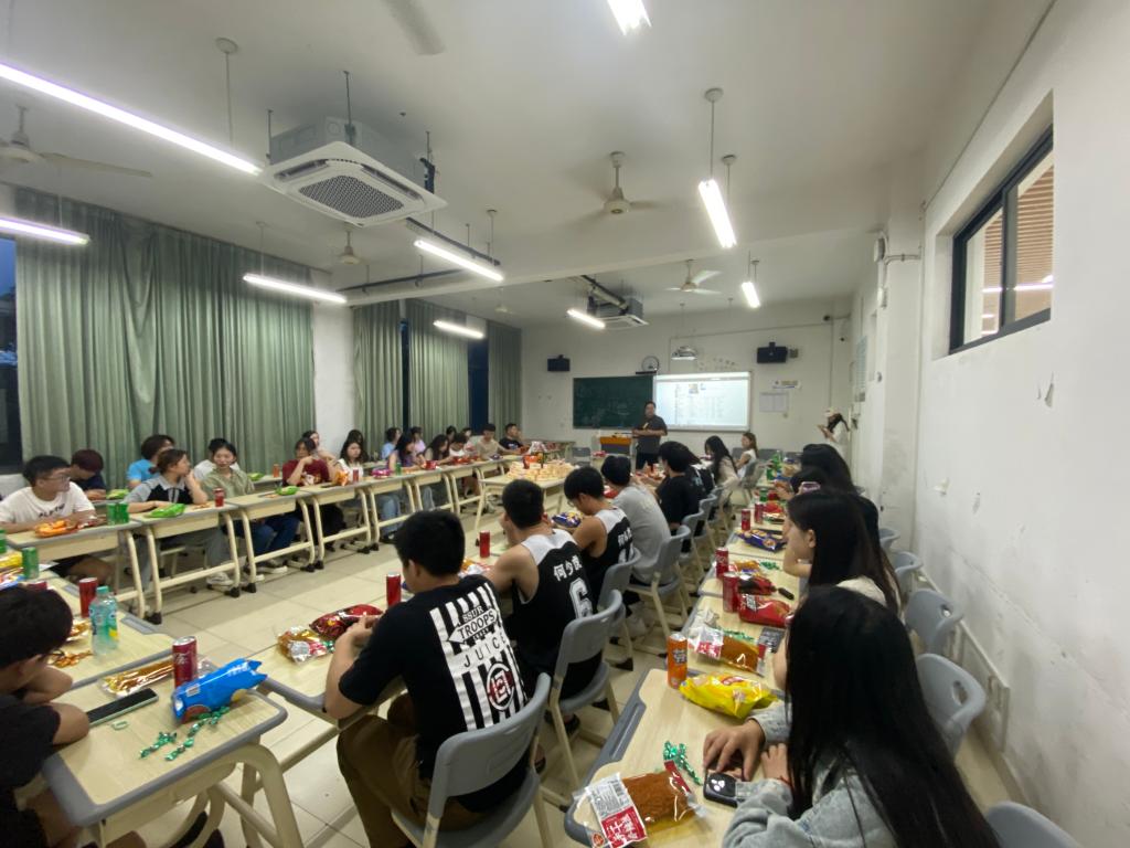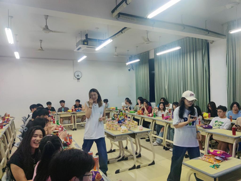 8月26日晚上,亚运会开幕式群演二班利用短暂休息间隙,在商贸旅游学院8314教室开展团建活动。班级领队王晓磊、郭明瑜老师与48名同学共同参加活动。