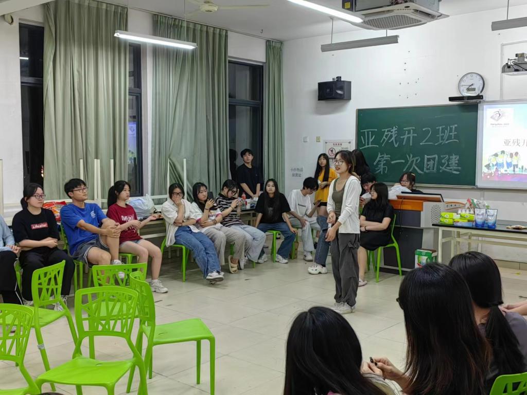 为了加强群演队伍建设,以更好地姿态投入训练。9月11日晚,亚残运会开幕式群演二班在商贸旅游学院8218教室开展了团建活动,学工办王晓磊、郭明瑜、李迪可、李青与50名群演学生共同参加活动。