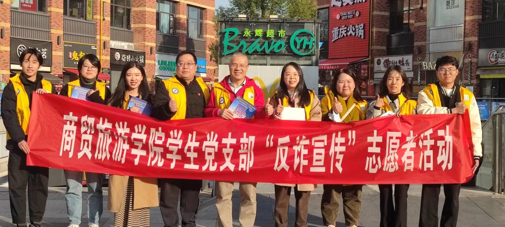 为深入践行贯彻“我为群众办实事”的服务理念,进一步增强党员师生的服务意识和责任担当,有效提升居民的反诈意识和防范能力。11月24日下午,商贸旅游学院学生党支部全体党员师生前往下沙宝龙广场开展反诈宣传志愿者活动,向居民及周围商户与学生发放宣传单页,共筑防诈反诈“防火墙”。