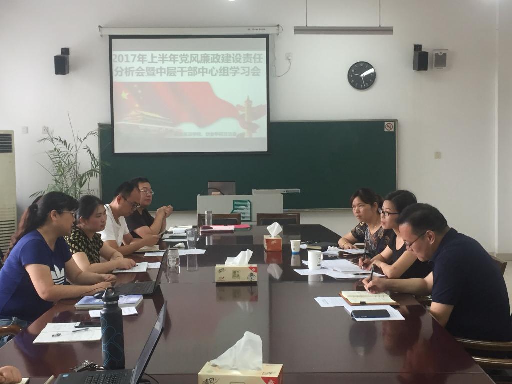 6月21日上午,商贸学院领导班子、全体中层干部在8318会议室召开党风廉政建设责任分析会暨中层干部中心组学习。会议由党总支副书记王天红主持,分院领导及全体中层干部参加。本次会议的主要内容是通过学习上级有关党风廉政建设工作的文件精神,认真查找薄弱环节,并认真制定处置对策。