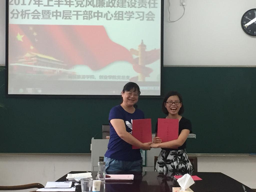 最后,分院王天红代表领导班子与各部门、各专业组负责人分别签订了党风廉政责任书。表明了分院对党风廉政工作的严抓不懈的态度。