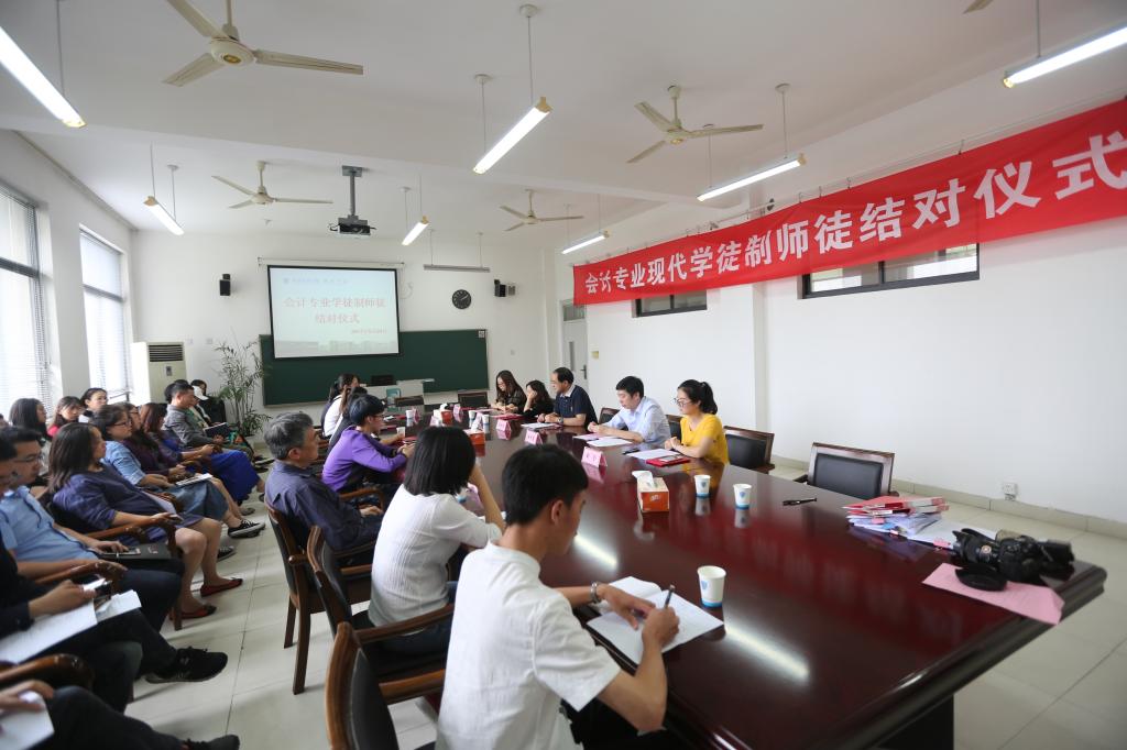 结对仪式由会计专业负责人施卓晨主持。首先,由施卓晨介绍近几年来会计专业现代学徒制的主要思路和做法。随后,举行了庄重的结对签约仪式,商贸旅游学院与国巨财务、校资产公司签订校企联合培养协议,由张赵根院长向企业导师颁发聘书,学徒们向企业导师行拜师礼,并进行了集体合影留念。