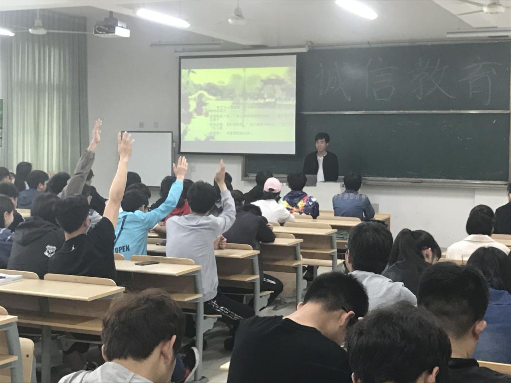 最后学工办主任王晓磊老师对此次班会进行了点评,王老师指出诚信不是口号,要行动起来,从诚信考试、跑步、上课、作业等身边小事做起。诚信为人、诚信做事,是五个文明的重要组成,也是一个人的基本底线,也许你的一次不诚信并不会有巨大损失,但是如果多次的不诚信,受损的必然是你自己。最后王老师呼吁全体同学以诚立身、以诚待人,从自己做起,让文明回归身边。