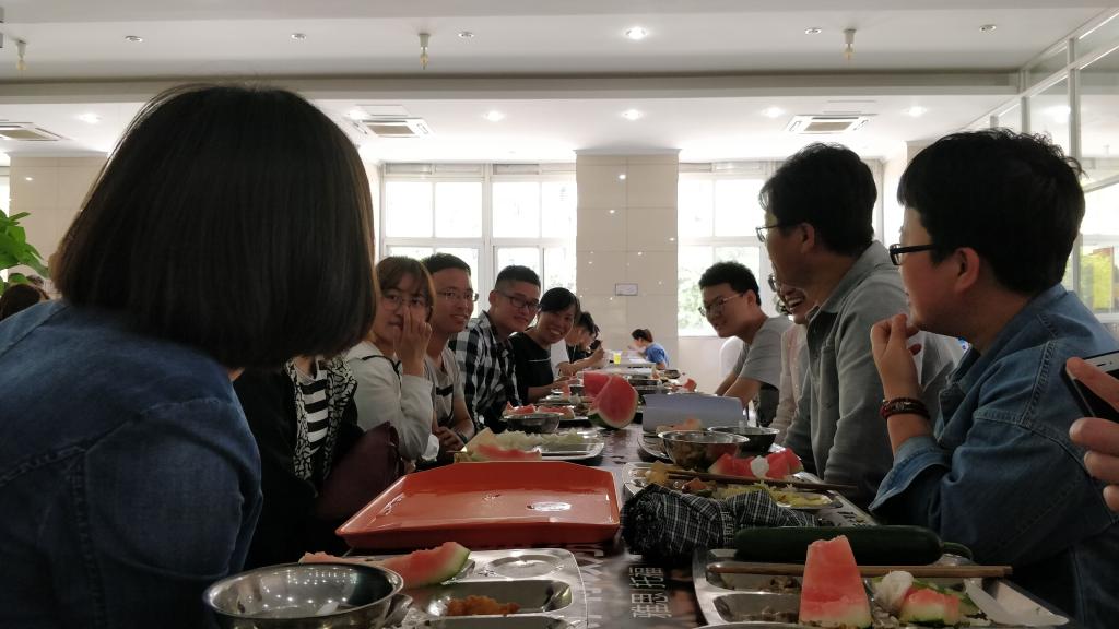 老师和同学们一边用餐,一边聊着家常。同学们也趁着这个机会,向老师提出了自己问题。老师也借此机会询问同学们生活、学习状态,倾听同学心声。