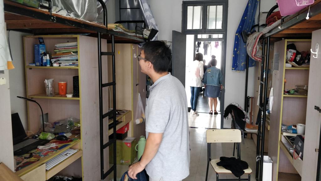 用餐结束后,第五支部的党员教师还走访了学生寝室,关注学生寝室的安全文明。党员教师对存在的问题进行指出改正,对学生在公寓生活的问题给予帮助。