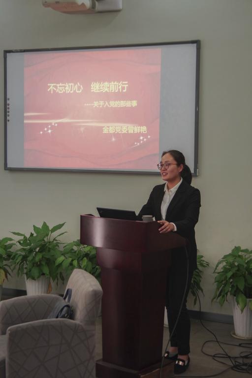 曾鲜艳学姐开篇以入党动机切入,深入浅出地剖析了入党原因,强调了入党程序及其严谨性;以党员权利与义务内涵与实战强调了党员的荣誉与责任。在交流过程中,学姐通过一系列真实统计数字详实介绍了入党程序要点、重点,并以自身和身边党员的为例,阐述职场中党员身份的意义,展现了党员不忘人民的初心、甘于奉献的作风、努力奋斗的品格。曾鲜艳学姐勉励在座的学生党员和入党积极分子,不忘初心、坚定理想信念,珍惜入党机会和党员身份,主动承担起荣誉和责任,切实发挥先锋模范作用。