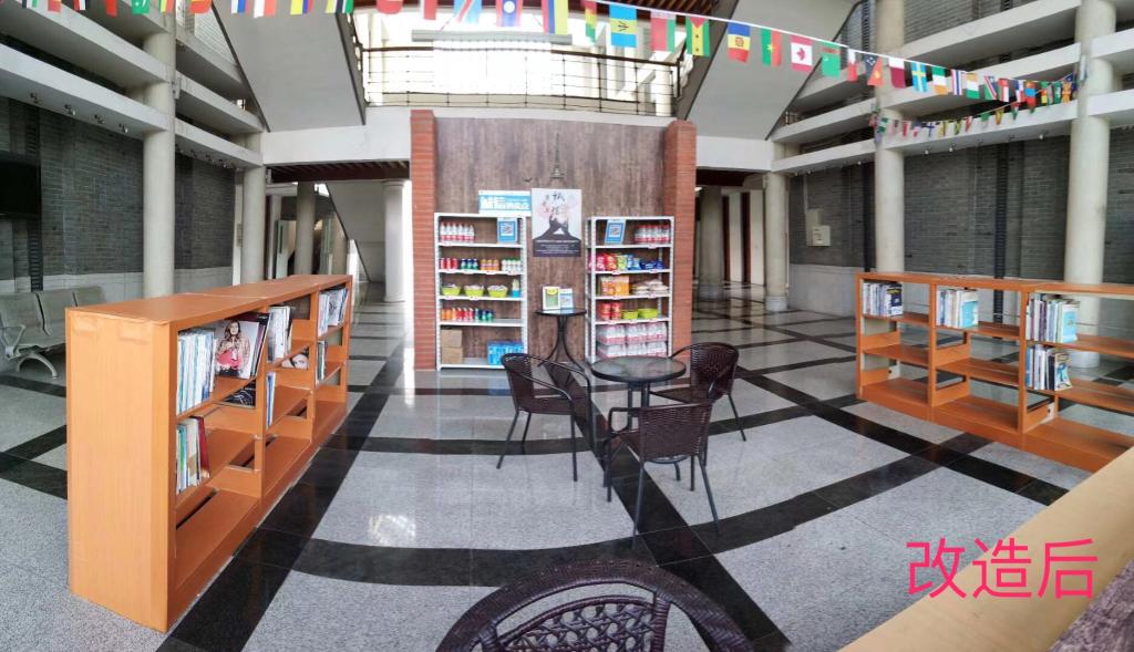 自商贸旅游学院组建以来,分院助困组织圆心舍接管了原6号教学楼中厅的咖啡吧。经过师生共同的调研、策划、商讨,最后决定将此处建设成方便同学们学习生活的室内休憩场所。经过圆心舍同学们前期的清洁整理、整修设计,诚信驿站应运而生。